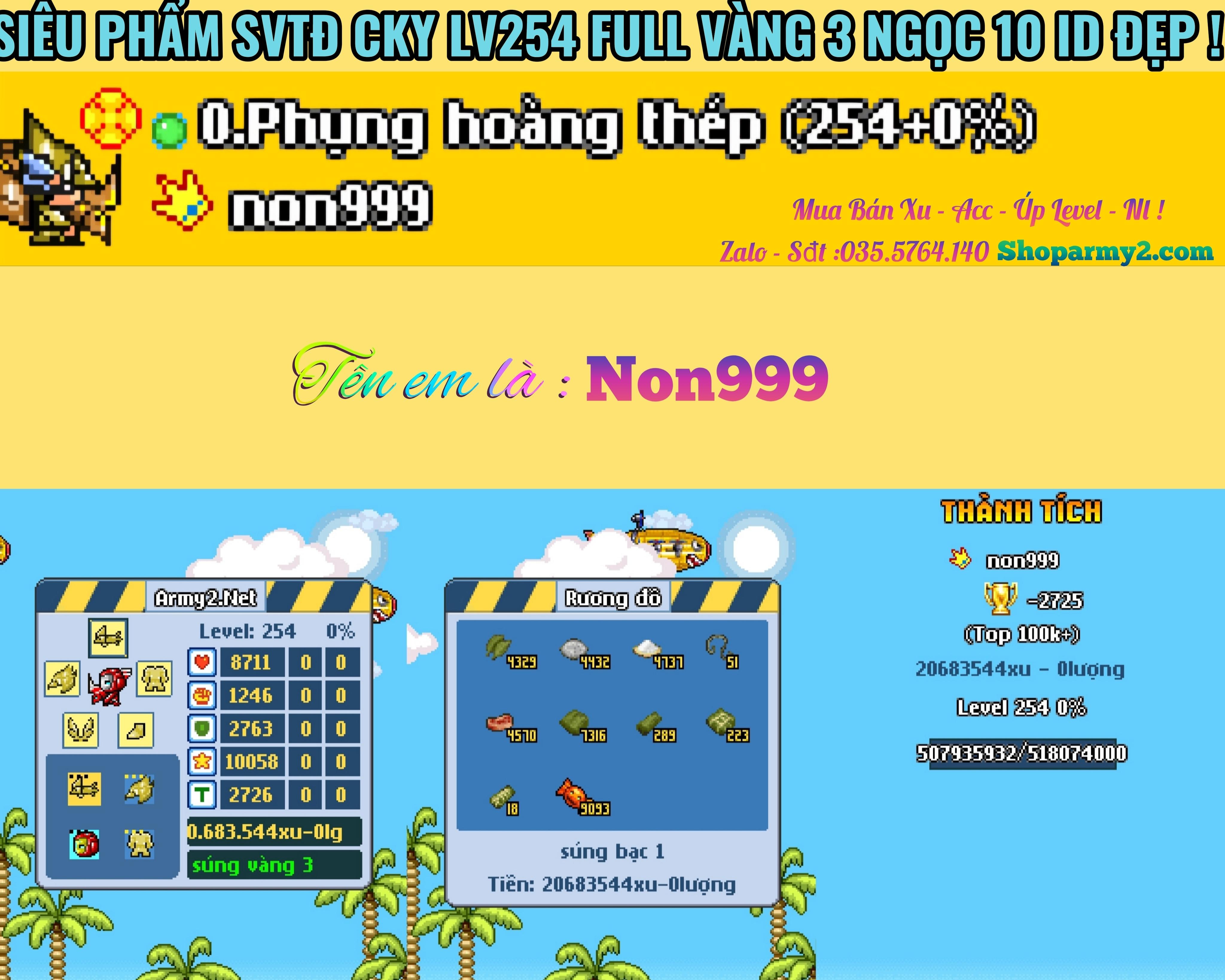 Nổi bật: Svtđ cky lv254 full vàng 3 ngọc 10 id đẹp .