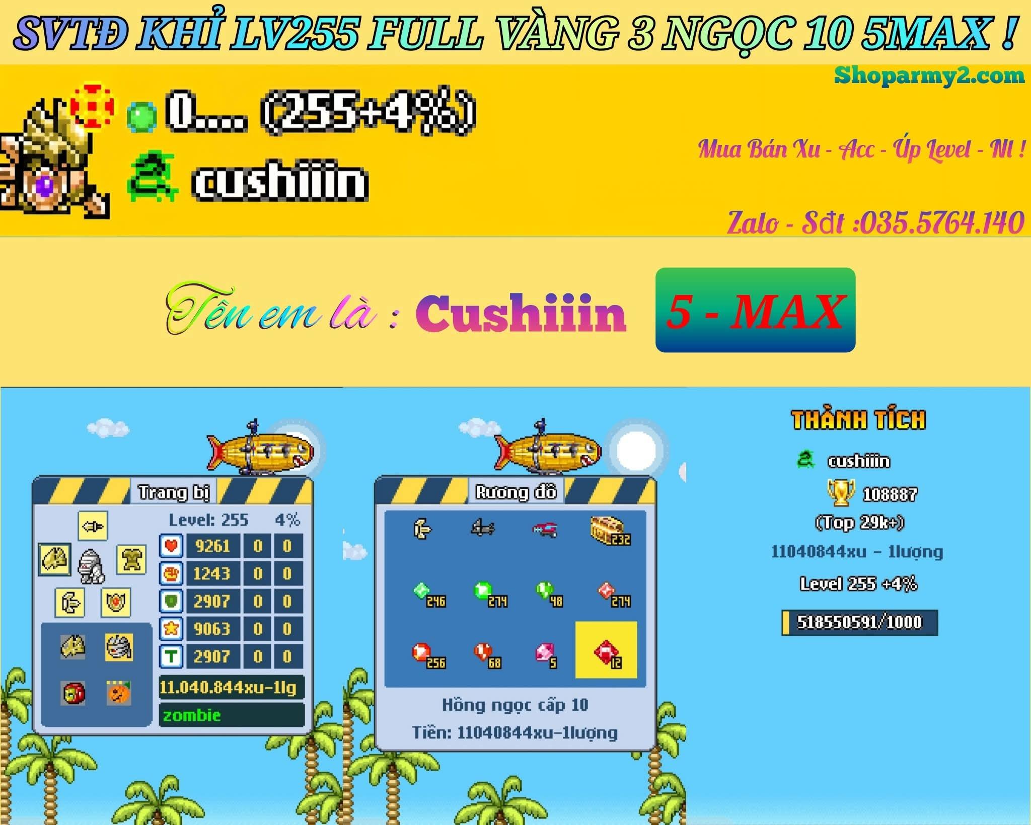 Svtd khỉ lv255 full vàng 3 ngọc 10 5max .
