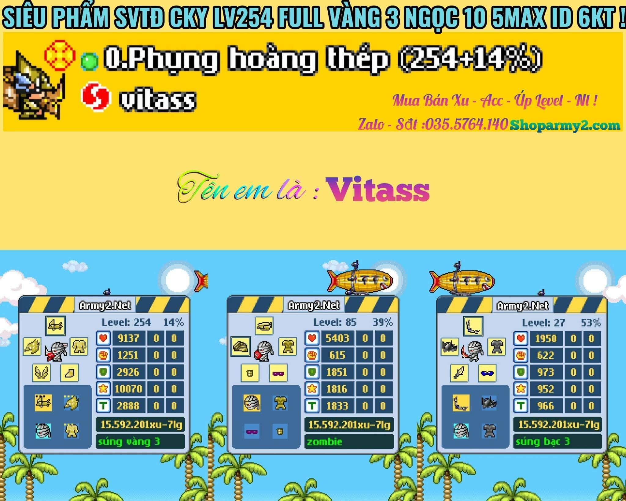 Svtd cky lv254 full vàng 3 ngọc 10 5max , 3tia lv85 vàng 1 , tz lv27 bạc 3 .