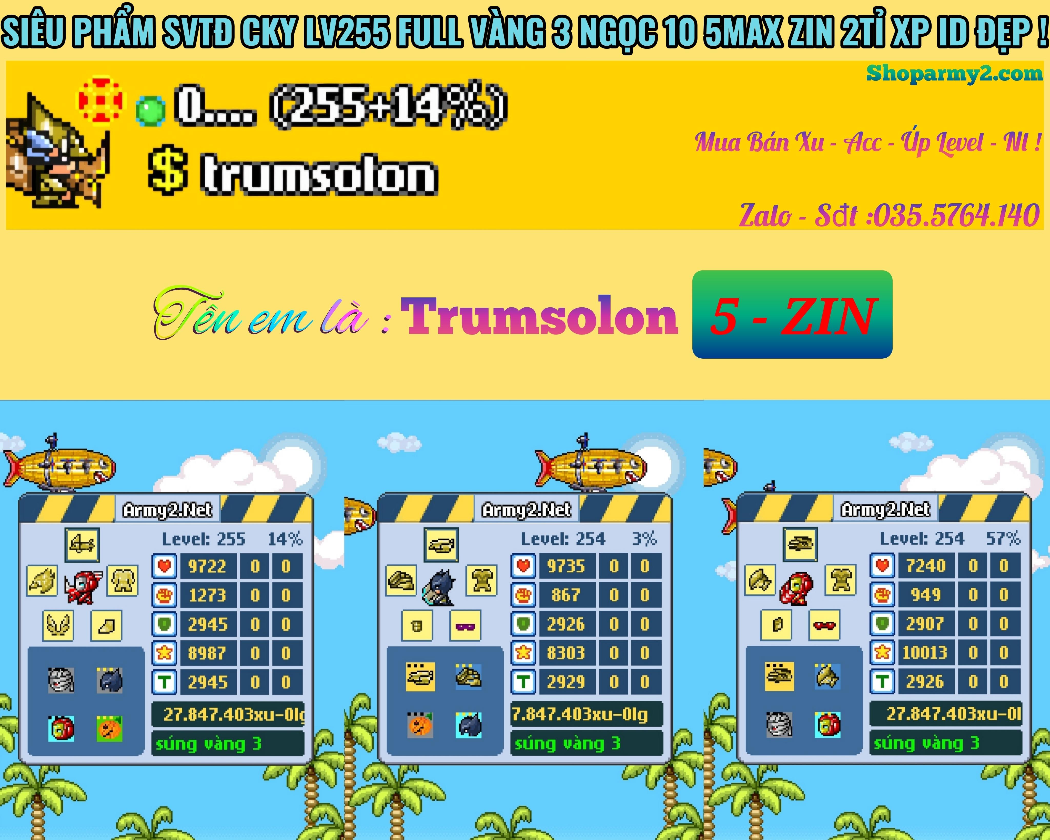 Nổi bật: Svtd cky lv255 full vàng 3 ngọc 10 5max zin 2tỉ xp , 3tia lv254 vàng 3 ngọc 10 , gun lv254 vàng 3 ngọc 10 id đẹp !