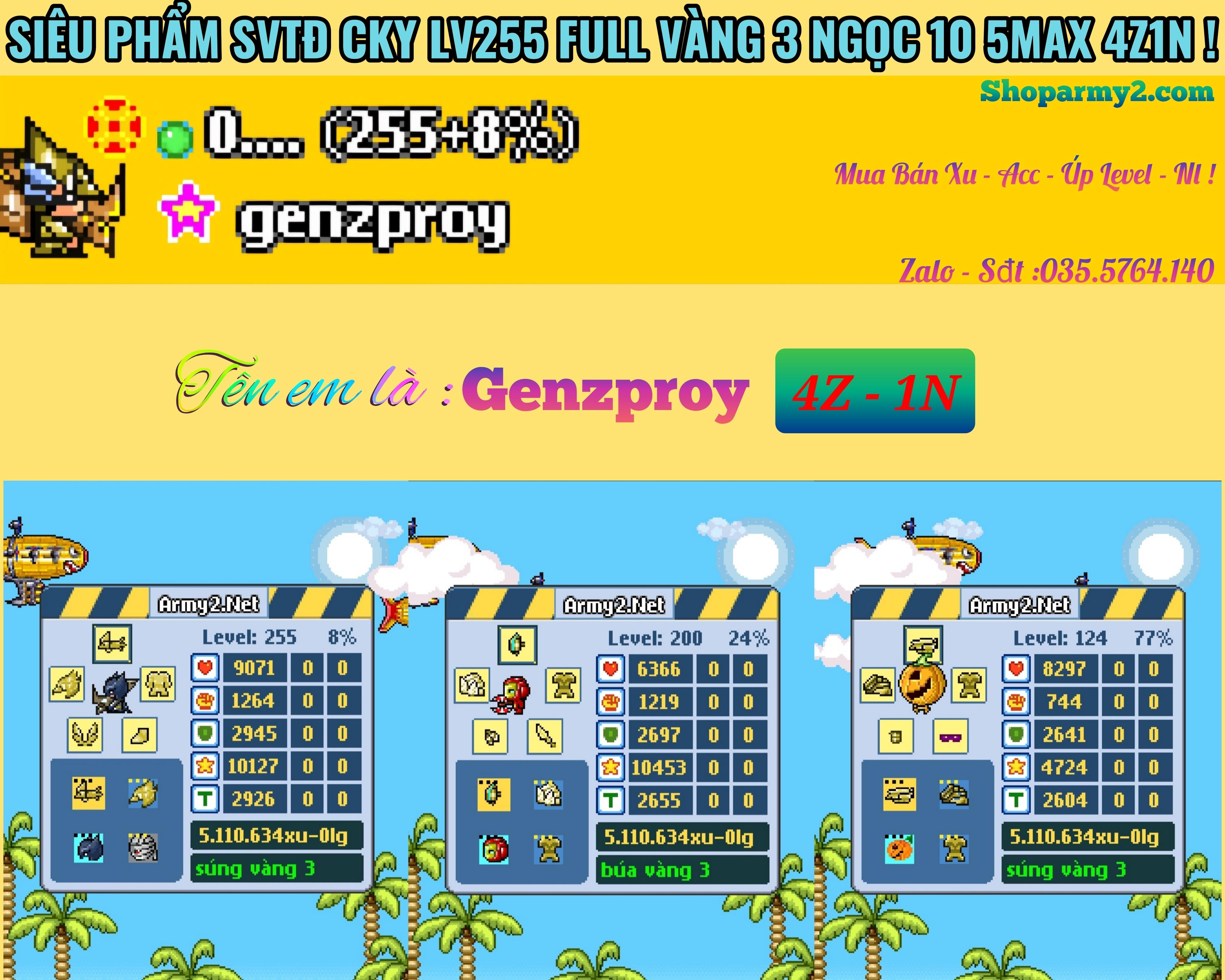 Nổi bật: Svtd cky lv255 full vàng 3 ngọc 10 5max 4zin 1 nút , apa lv200 vàng 3 ngọc 10 , 3tia lv124 vàng 3 ngọc 10 .